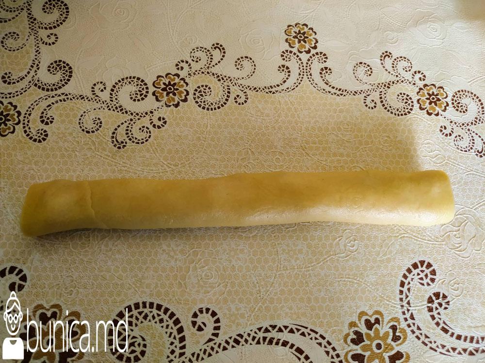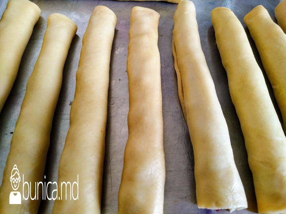 Peste o oră, împărțim aluatul în 15 bile egale. Modelăm rulourile.